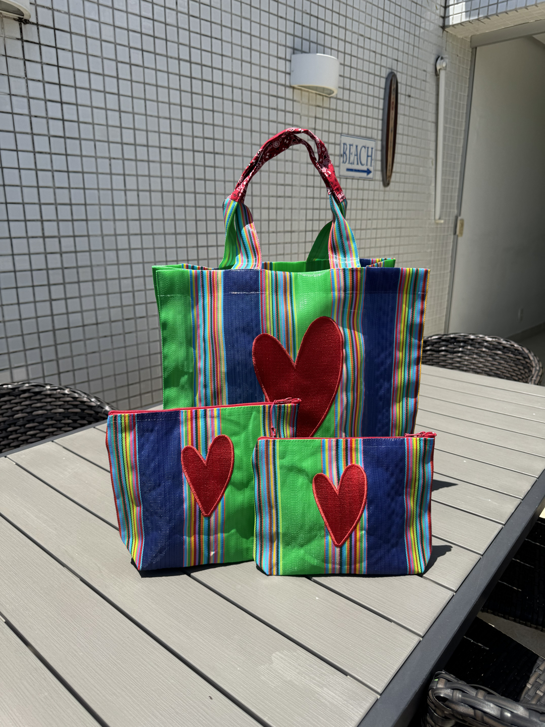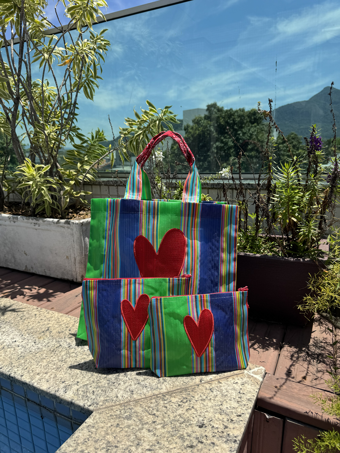 Imagina poder carregar toda a sua “tralha” numa Tote Bag em tela de nylon bordada, lavável e super resistente, e ainda poder personalizar com as suas iniciais! Alças longas em nylon com detalhe em bandana para maior conforto, ideal para carregar no ombro. Bordado coração Dupla grande em vermelho de um lado e no outro bolso com as iniciais bordadas à mão conforme solicitado (máximo de 5 letras) com aproximadamente 2cm de altura. As iniciais tem sempre o mesmo tamanho e localização (conforme foto) e são na cor vermelha. (Não aceitamos trocas após a personalização!)