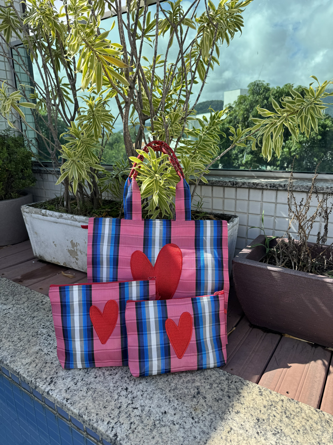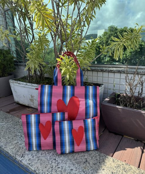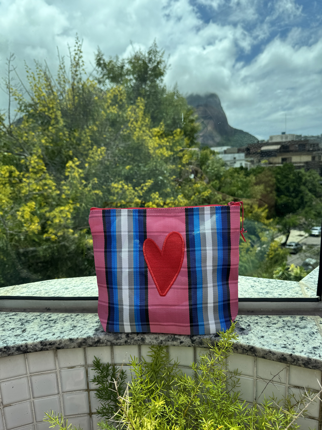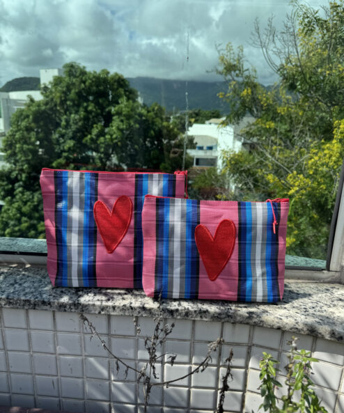 Necessaire em nylon bordada com coração Dupla Vermelho.