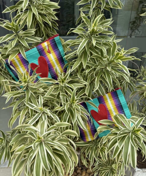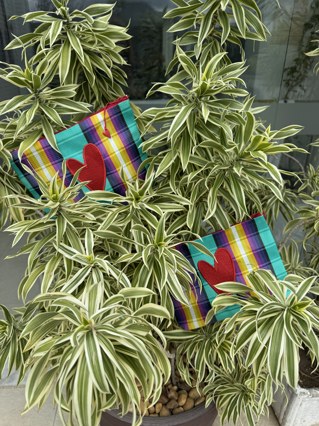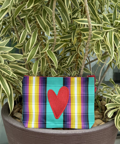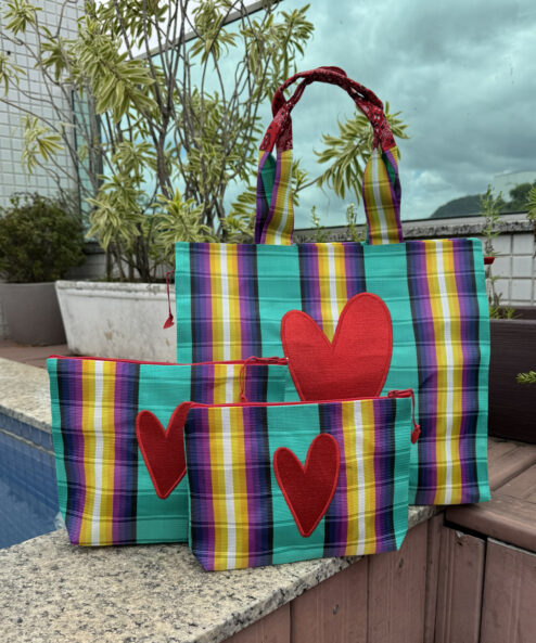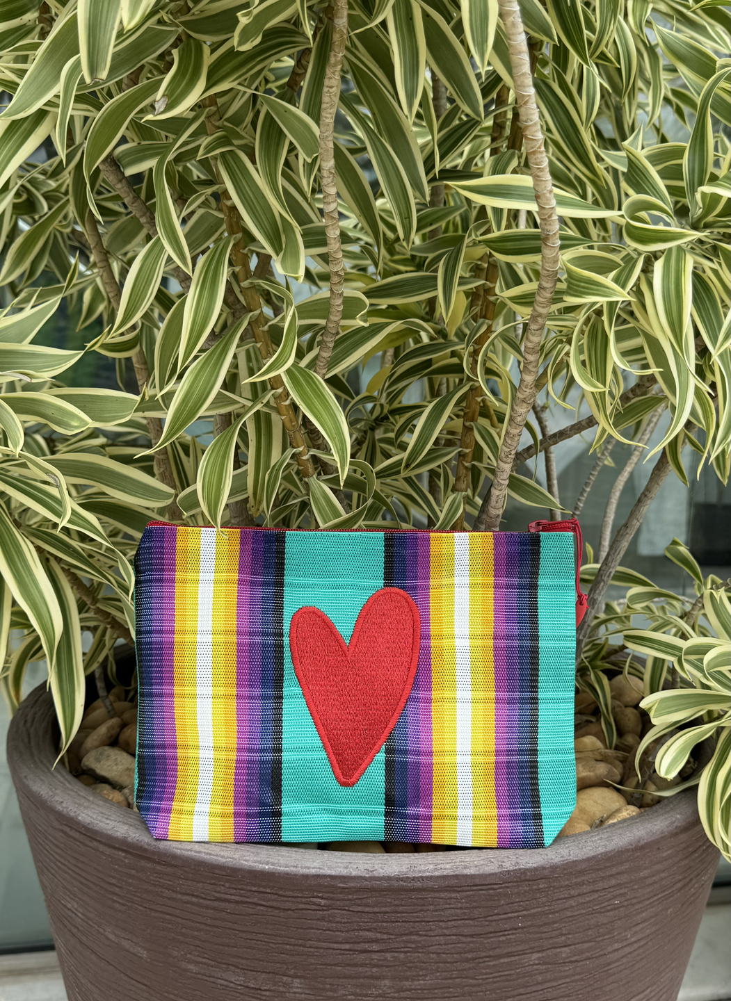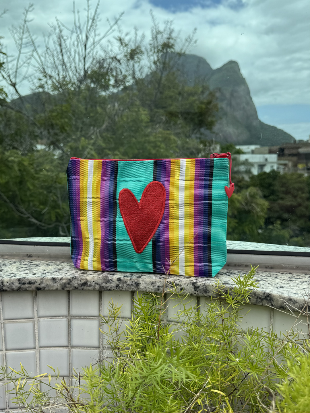 Necessaire em tela de nylon bordada com coração Dupla vermelho. Possuí ziper, é lavável e resistente.