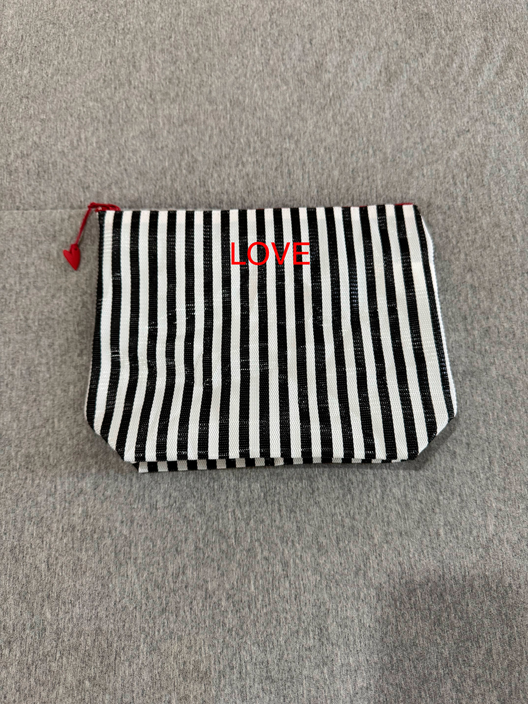 Atendendo a muitos pedidos, agora, você também pode personalizar os outros modelos de bolsas e necessaires. Bordado coração Dupla em vermelho de um lado e personalização do outro lado, no bolso das Bolsas e Mala, ou nas costas das necessaires. Bordamos à mão (máximo de 5 letras) com aproximadamente 2cm de altura. As letras tem sempre o mesmo tamanho e localização (conforme foto) e são na cor vermelha. (Não aceitamos trocas após a personalização!) Só bordamos LETRAS